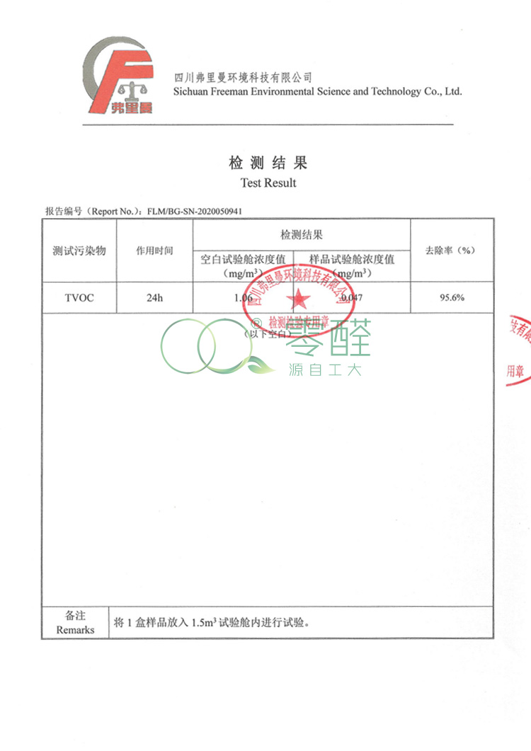 檢測報告:甲醛去除率