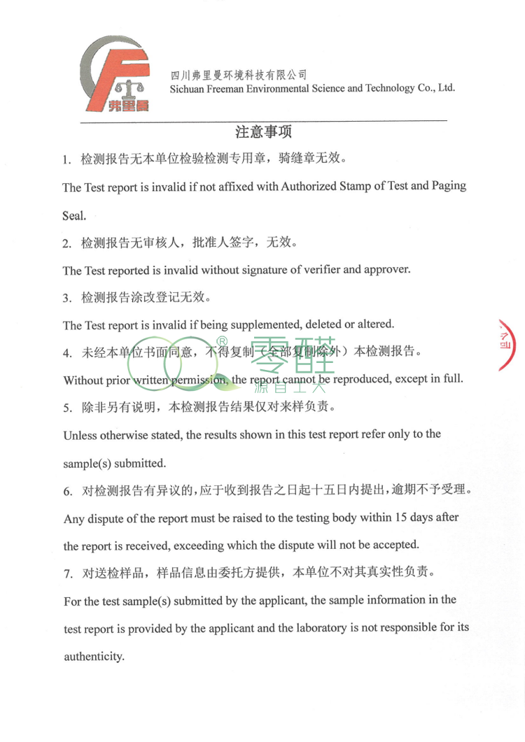 經弗里曼檢測中心測試,產品屬于