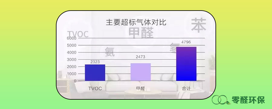 室內空氣污染的主要有害氣體是甲醛和TVOC(總揮發性有機物),在6482個檢測樣本中,這2種氣體超標點位共計4796個,占總不合格點位的97.3%。
